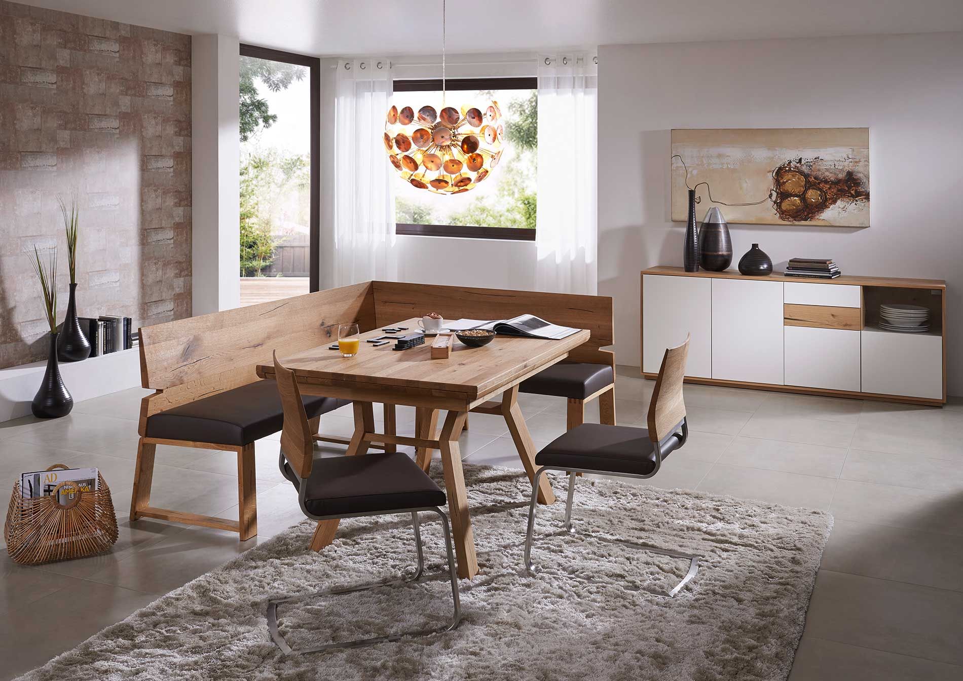 Sie haben in der Küche etwas Leckeres gezaubert und möchten es nun gemeinsam mit Ihren Lieben genießen? Dafür bieten wir in unserer Ausstellung hochwertige Tische, Stühle und vor allem auch Eckbänke von den renommierten Herstellern Anrei und Schösswender. Mit diesen Markenprodukten erhalten Sie Wertarbeit in Schreinerqualität. Unser Tipp: Planen Sie Ihre Küche deshalb gleich mit den passenden Essplätzen. So entsteht eine stilvolle Wohnküche, in der alle Elemente zueinander passen.