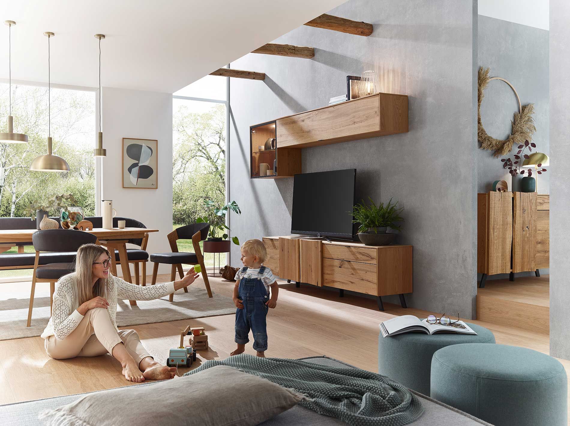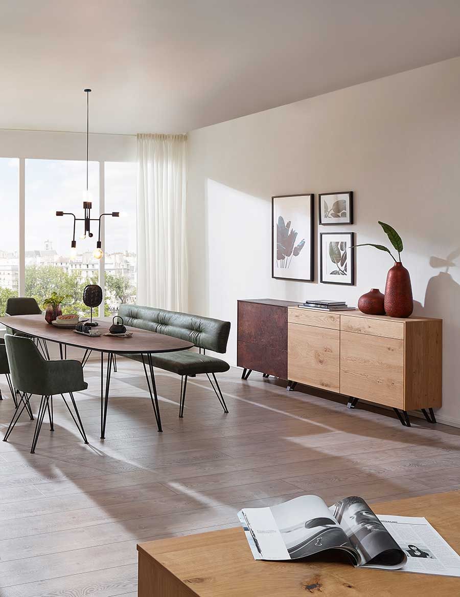 Offene Küchenplanungen werden immer beliebter. Umso wichtiger, dass Küchen-, Wohn- und Esszimmermöbel perfekt aufeinander abgestimmt sind. Ob Sie einen großen Esstisch mit Platz für Familie und Freunde möchten oder einen kleinen Tisch mit Stühlen für das schnelle Frühstück – bei Kreuzpaintner finden Sie das Passende. Mit unseren Möbeln für den Wohnbereich schaffen wir ein harmonisches Ambiente zum Wohlfühlen.
